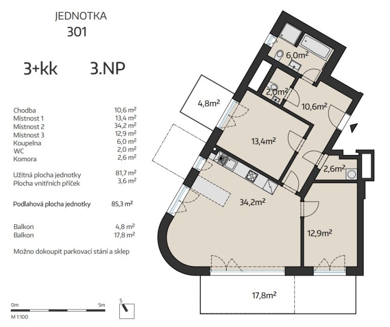 plocha jednotky + balkonů / zahrad